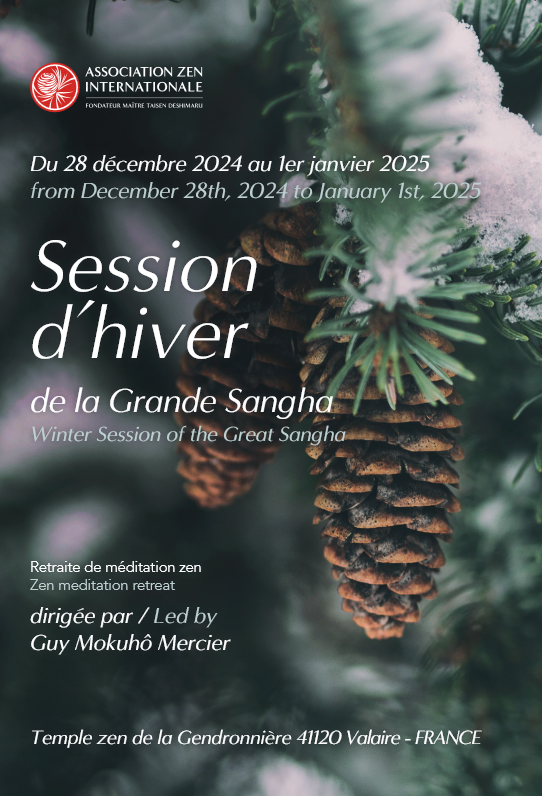 Winter Sesshin at of La Gendronnière Zen Temple, to be led by The Abbot, Guy Mokuho.